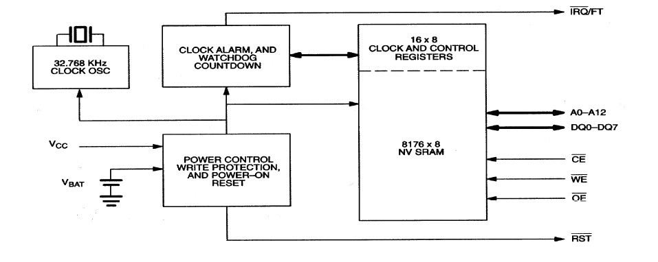 The DS9034PCX is a full-function, year-2000-compliant (Y2KC) real-time clock/calendar (RTC) with an RTC alarm, watchdog timer, power-on reset, battery monitor, and 8k x 8 nonvolatile static RAM. User access to all registers within the device is accomplished with a byte-wide interface. The DS9034PCX registers contain century, year, month, date, day, hours, minutes, and seconds data in 24-hour BCD format. Corrections for day of month and leap year are made automatically.